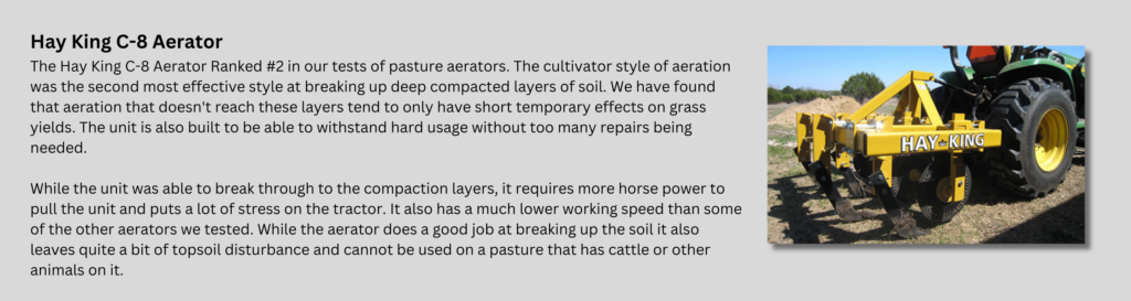 The Hay King C-8 Aerator ranked #2 in our rankings of the best Pasture Aerators on the market.