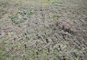 The RanchWorx SB model Aerator uses Drum Style Aeration. This utilizes the weight of the heavy-duty frame as well as the drum, which can be filled with water for additional weight, to pierce the ground. The blades are patterned around the drum in a way which allows for an extremely large amount of weight to be put into each ground penetration. The Aerator then uses the weight and torque to send a fracture deep into the soil.
